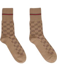 Beige Cotton Gg Pattern Blend Socks Gucci Us
