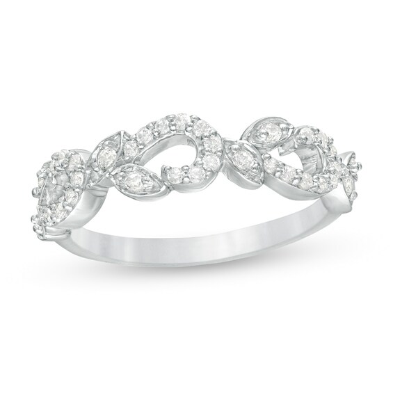 1 4 Ct T W Diamond Leaf Vine Stackable Band In 10k White Gold Zales